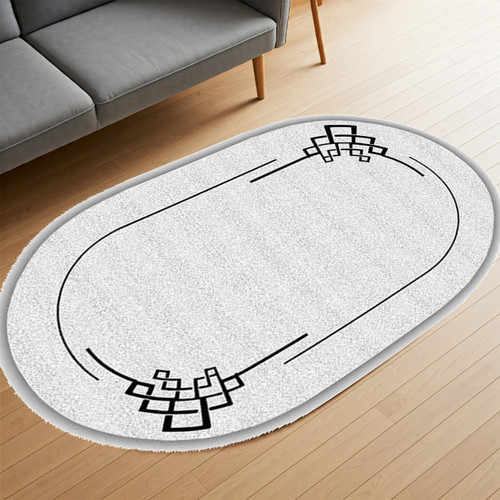 فرش بیضی سیاه‌سفید هنری - فرشینه و فرش بیضی کد B133