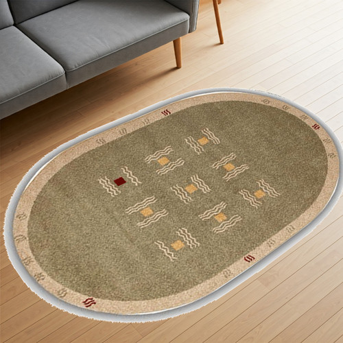 فرش بیضی خاکی هندسی - فرشینه و فرش بیضی کد B149