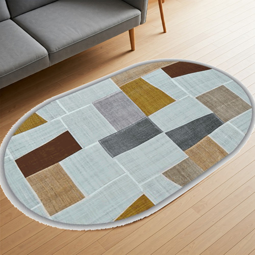 فرش بیضی پچ‌ورک مدرن - فرشینه و فرش بیضی کد B137