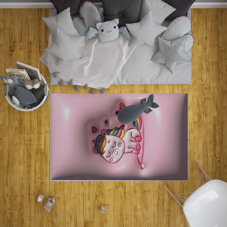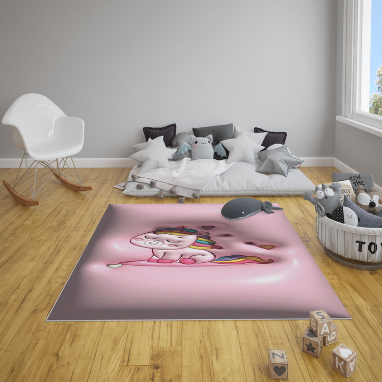 فرش کودک تک‌شاخ دوست‌داشتنی - فرشینه و فرش چاپی کد 8115