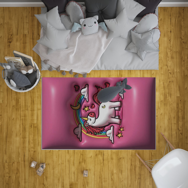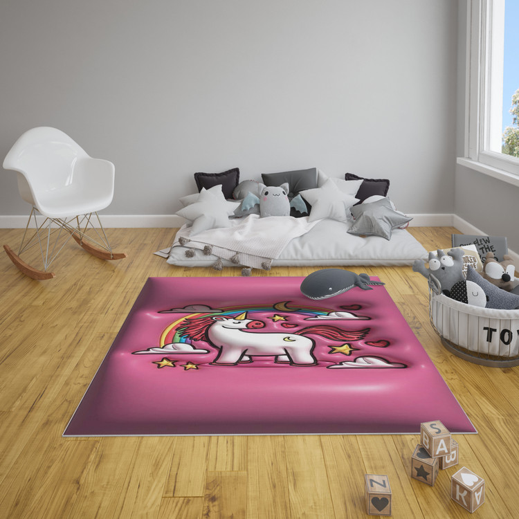 فرش رنگینکمان جادویی با طرح تکشاخ و رنگینکمان، فضایی خیالانگیز و پرانرژی برای اتاق کودک شما خلق میکند. مناسب برای اتاق کودکان.