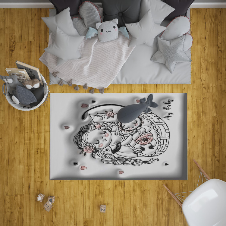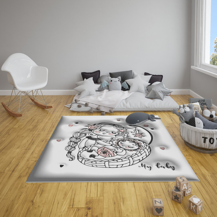 فرش کودک دخترک و قلبها با طرحی ظریف و دلنشین از یک دختر کوچک با قلبهای دوستداشتنی، فضایی پر از عشق و مهربانی را در اتاق کودک ایجاد میکند.