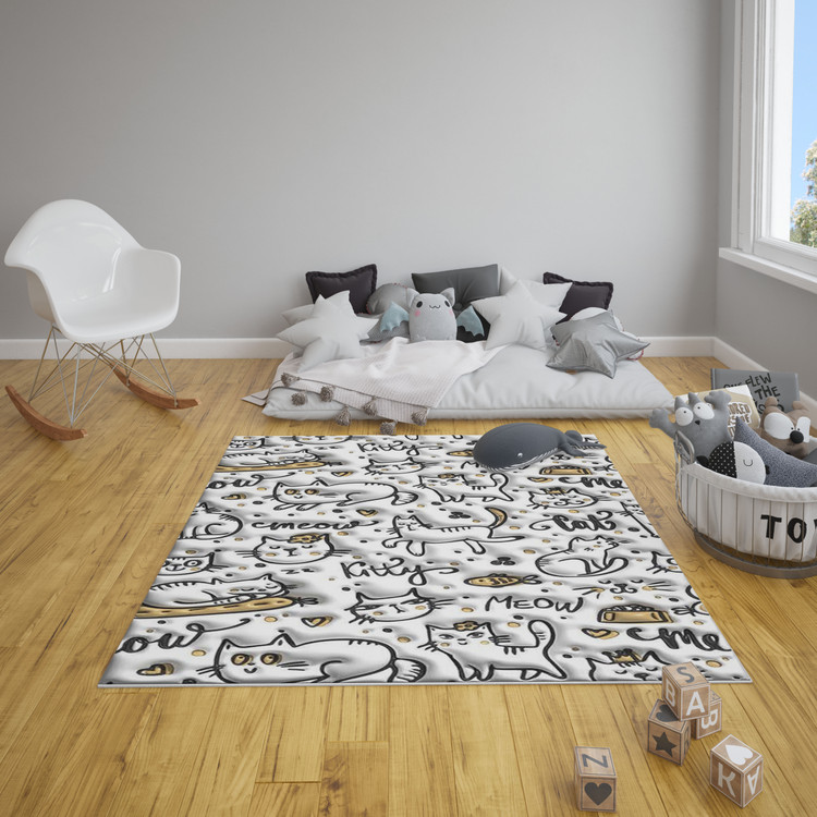 فرش کودک گربههای بازیگوش با طرحی کارتونی از گربههای شیطون و پر انرژی، مناسب برای تزئین اتاق کودکانی است که عاشق حیوانات خانگی هستند.
