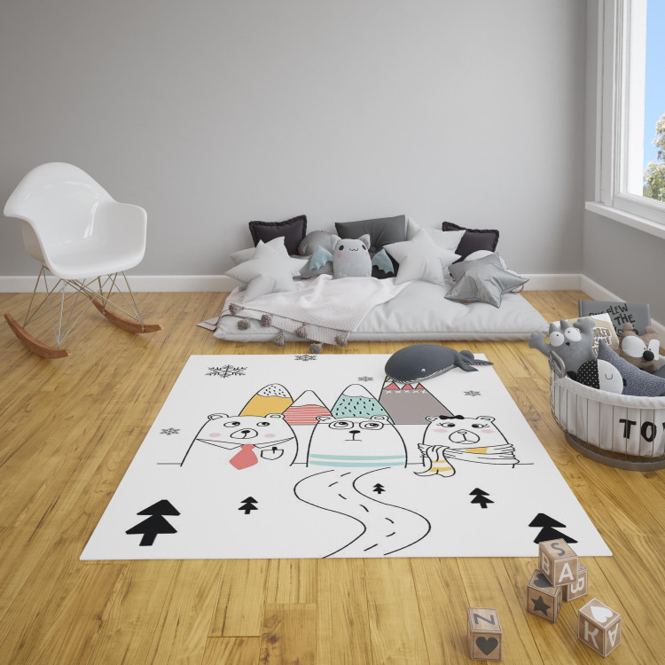 فرشینه مخمل ضد حساسیت اتاق کودک طرح خرس مینیمال کد h 356 - فرش چاپی اتاق کودک