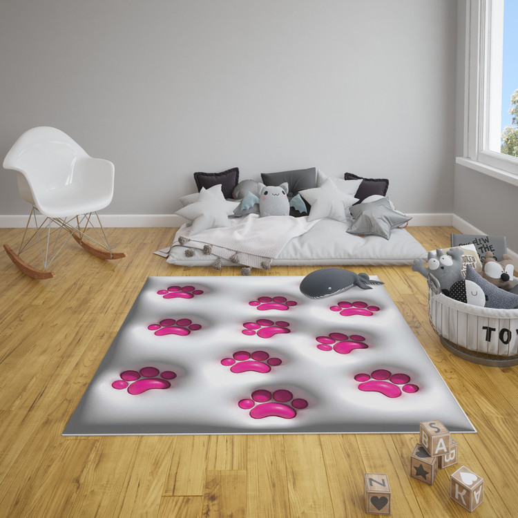 فرش کودک رد پای صورتی کوچک - فرشینه و فرش چاپی کد 8152