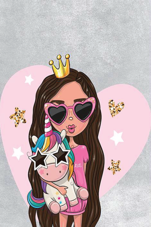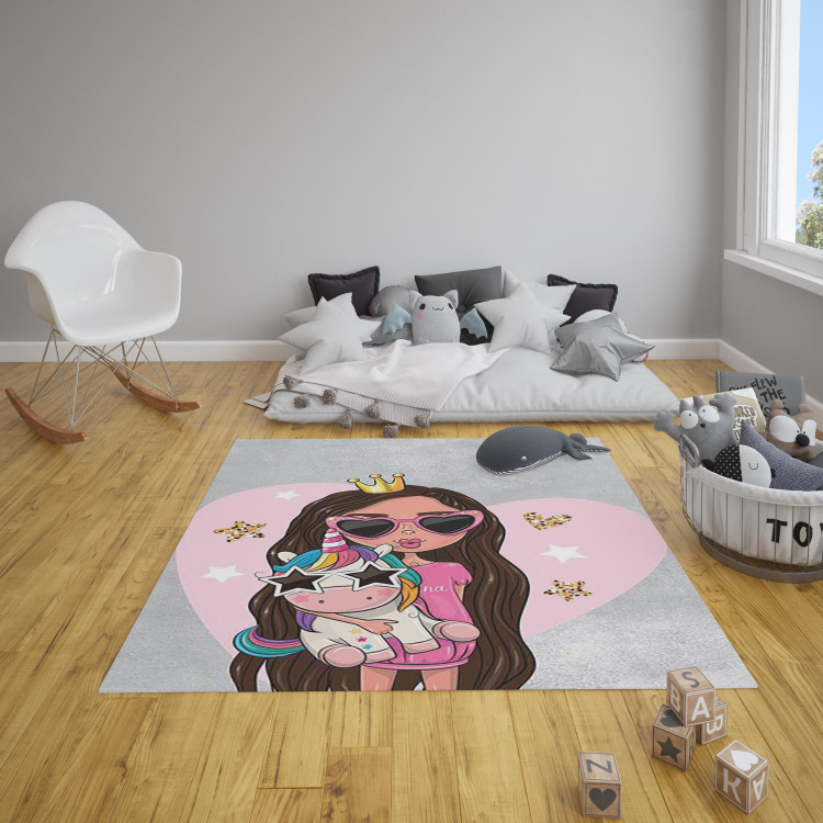 فرشینه مخمل ضد حساسیت اتاق کودک طرح دختر واسب تک شاخ کد h 357 - فرش چاپی اتاق کودک