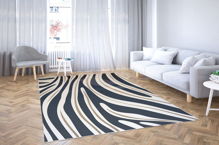 فرش طرح پوست مدل راهراه شبانه کد Z001 با الگوی زیبا و راهراههای کلاسیک خود، انتخابی شیک و جذاب برای فضاهای مدرن و کلاسیک است.
