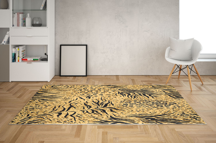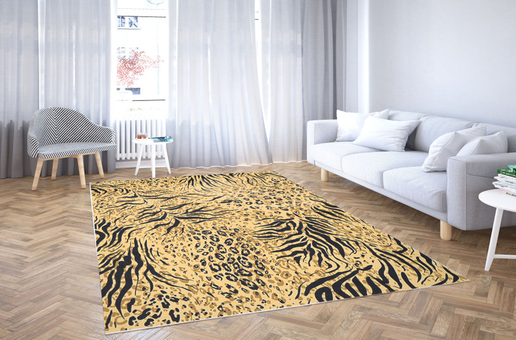 فرش ببر طلایی کد Z020 با طرح پوست ببر و رنگ طلایی، انتخابی زیبا و متفاوت برای دکوراسیونهای مدرن است و جلوهای از طبیعت وحشی به فضا میبخشد.