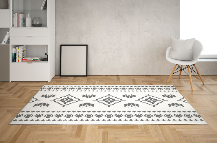 فرش سبک مراکشی طرح گلریز سیاه و سفید - فرشینه و فرش چاپی کد M343