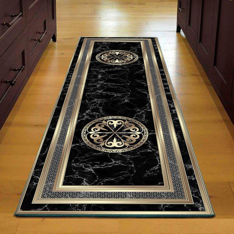 فرش راهرویی سیاه و طلایی لوکس - فرشینه و فرش چاپی کد R120