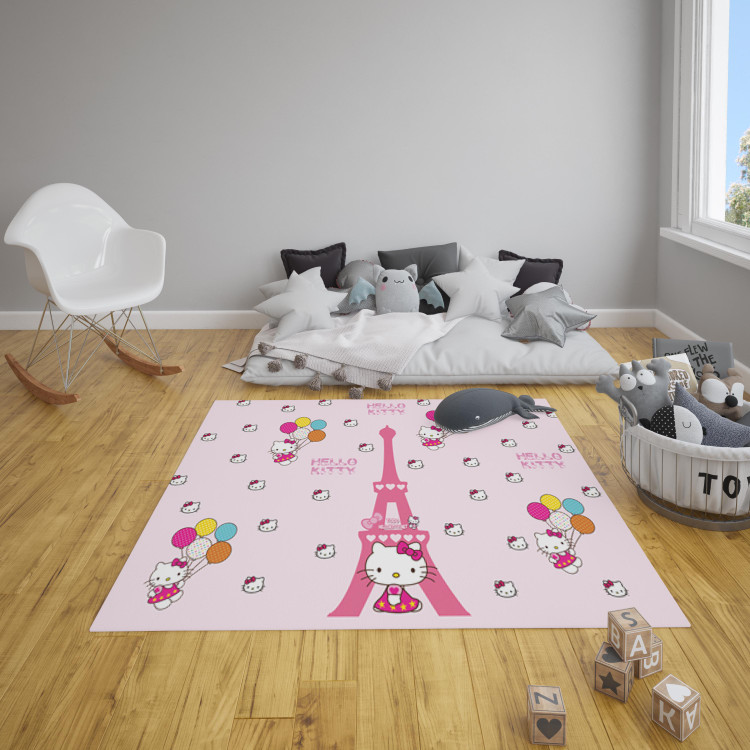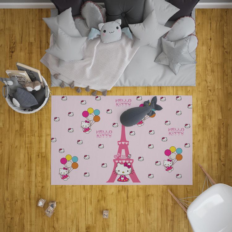 فرشینه مخمل ضد حساسیت اتاق کودک طرح کیتی و برج ایفل کد h 365 - فرش چاپی اتاق کودک