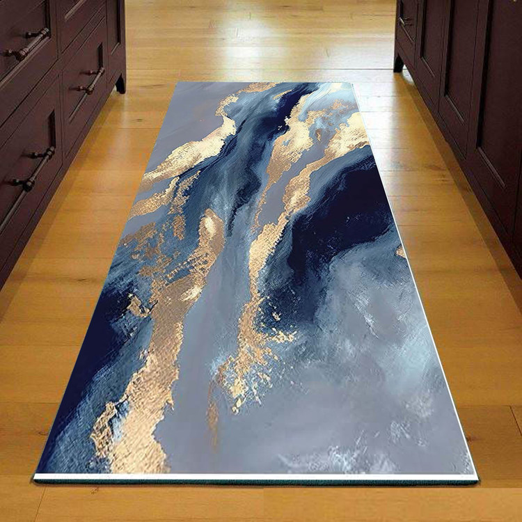 فرش راهرویی طرح آبستره آبی و طلایی - فرشینه و فرش چاپی کد R128