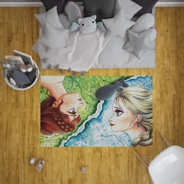 فرشینه مخمل ضد حساسیت اتاق کودک طرح السا و انا کد h 366 - فرش چاپی اتاق کودک