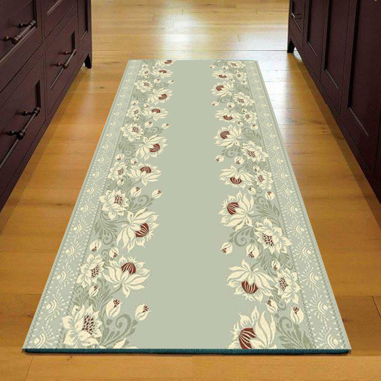 فرش راهرویی با طرح گلهای سبز و کرمی - فرشینه و فرش چاپی کد R141