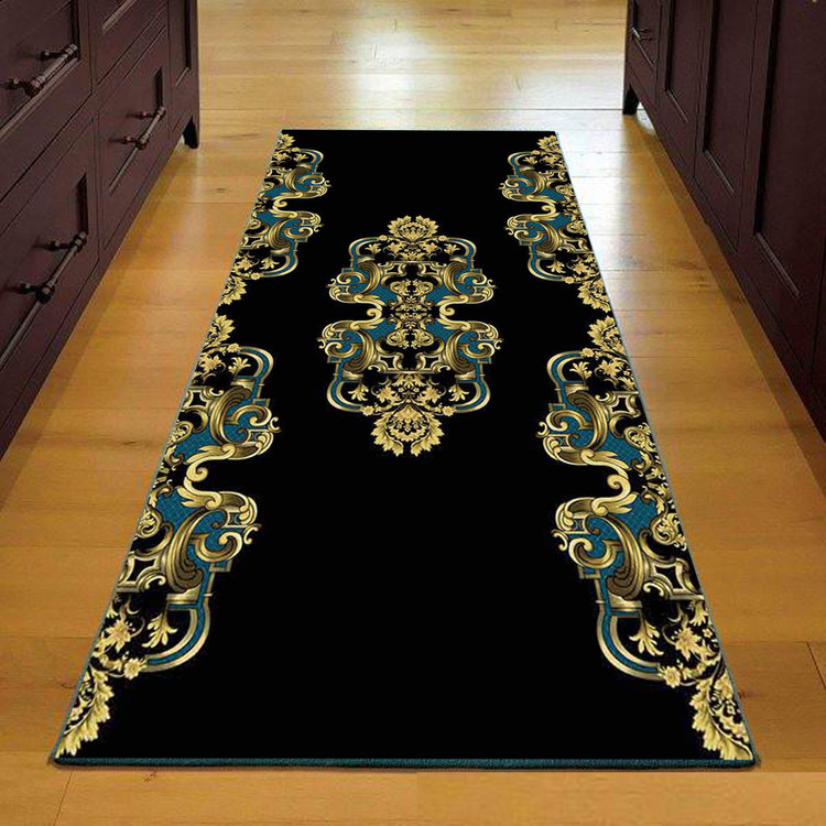 فرش راهرویی کلاسیک مشکی و طلایی - فرشینه و فرش چاپی کد R142