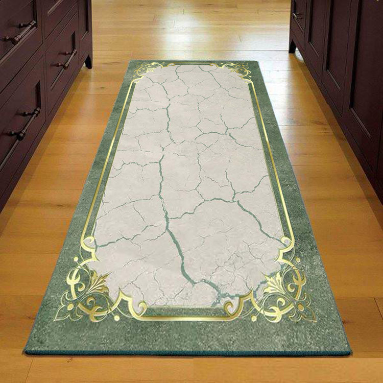 فرش راهرویی سنگی با طرح ترکدار سبز - فرشینه و فرش چاپی کد R150