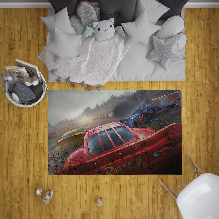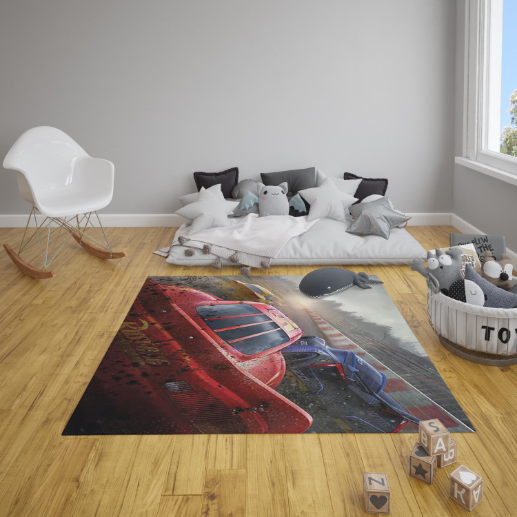 فرشینه مخمل ضد حساسیت اتاق کودک طرح ماشینها مک کوئین کد h 366 - فرش چاپی اتاق کودک