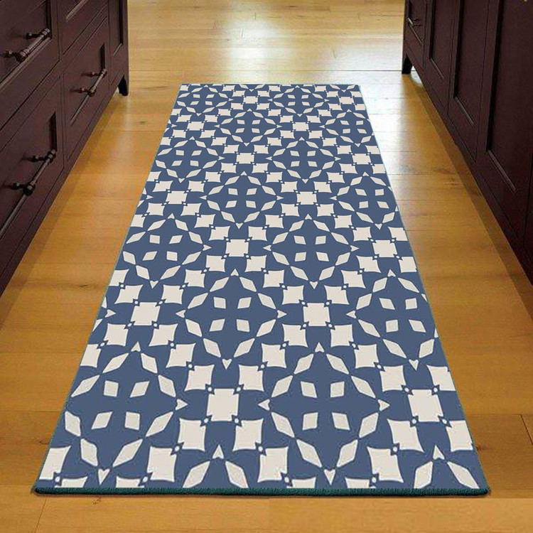 فرش راهرویی با طرح هندسی کاشیهای آبی - فرشینه و فرش چاپی کد R156