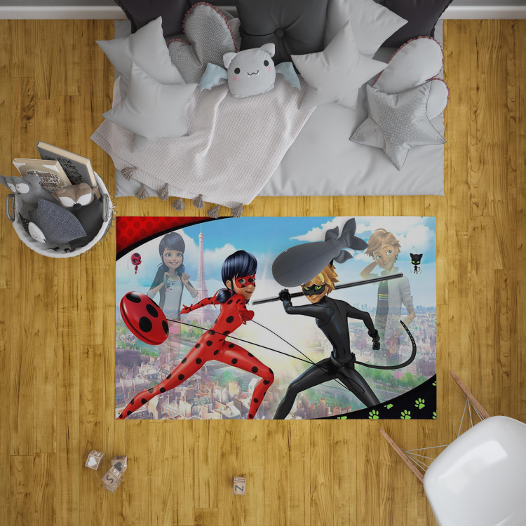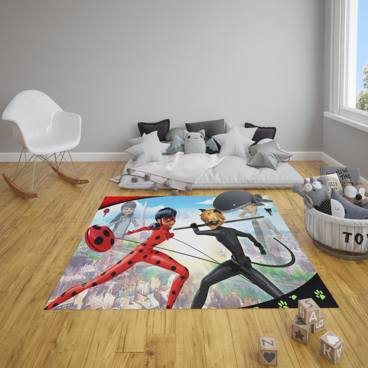 فرشینه مخمل ضد حساسیت اتاق کودک طرح دخترکفشدوزکی کد h 493 - فرش چاپی اتاق کودک