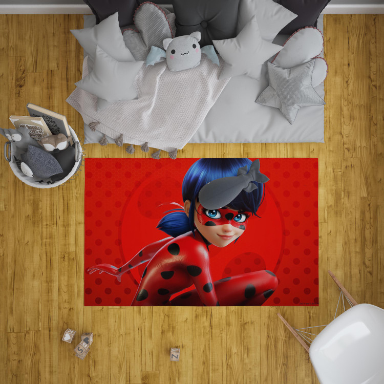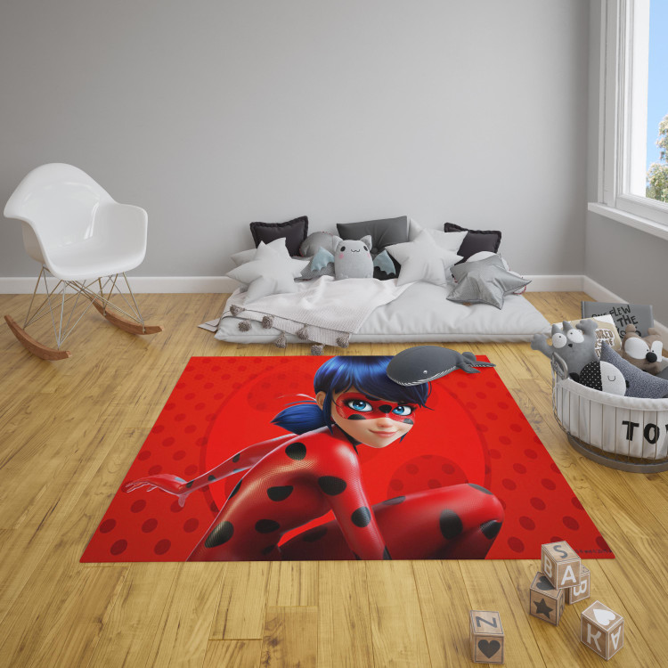 فرشینه مخمل ضد حساسیت اتاق کودک طرح دخترکفشدوزکی کد h 494 - فرش چاپی اتاق کودک