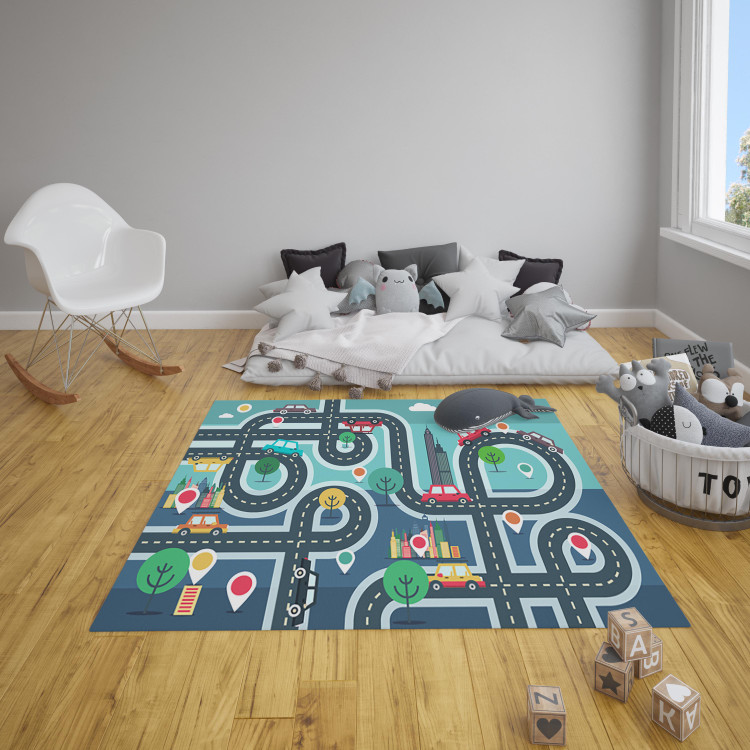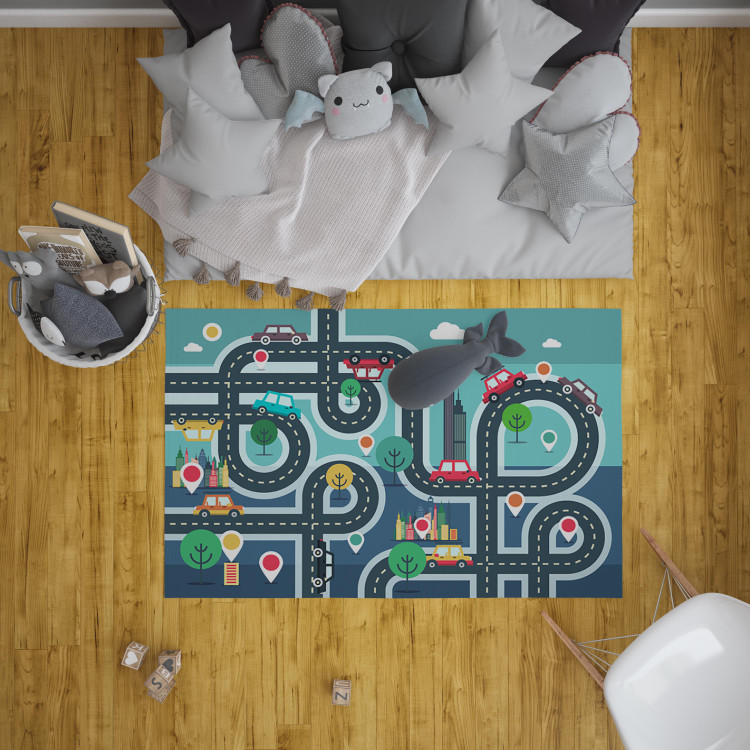 فرشینه مخمل ضد حساسیت اتاق کودک طرح جاده مینیمال کد h 502 - فرش چاپی اتاق کودک