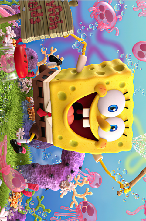 فرشینه مخمل ضد حساسیت اتاق کودک طرح باب اسفنجی کد h 503 - فرش چاپی اتاق کودک
