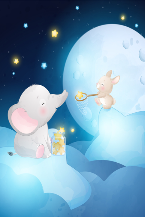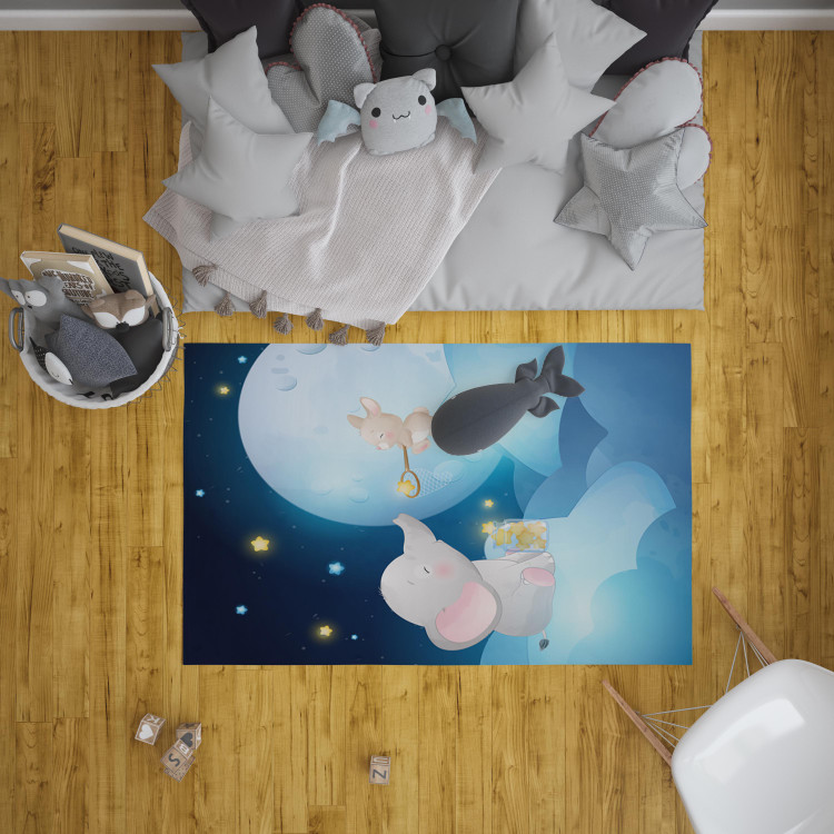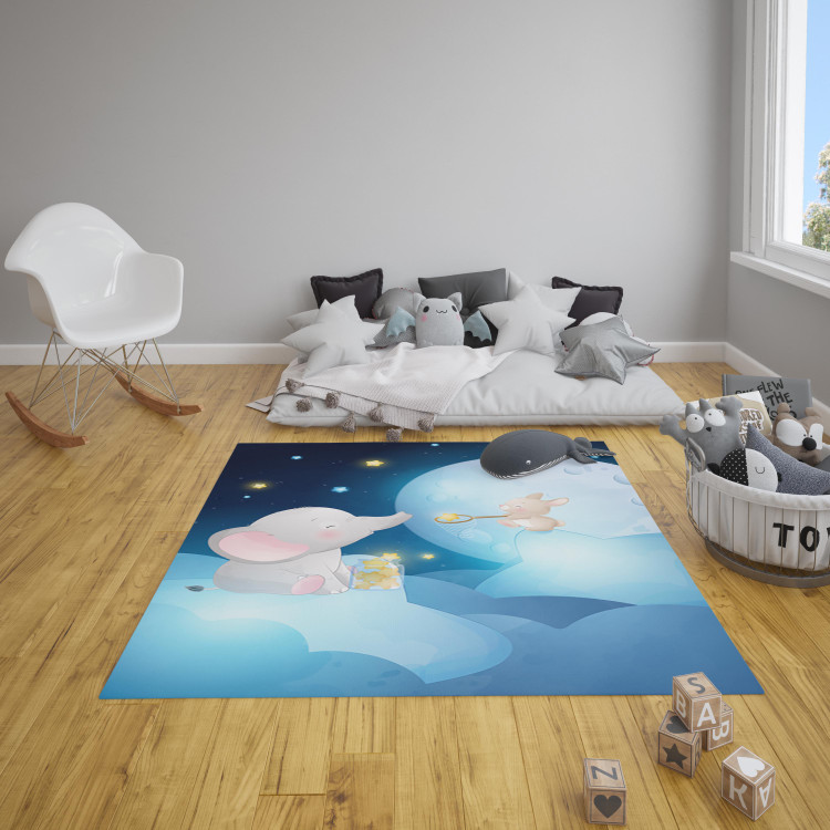 فرشینه مخمل ضد حساسیت اتاق کودک طرح فیل وخرگوش کد h 507 - فرش چاپی اتاق کودک
