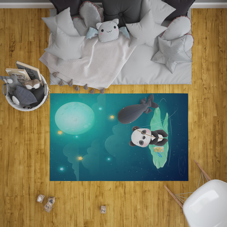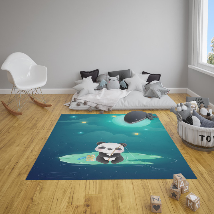 فرشینه مخمل ضد حساسیت اتاق کودک طرح پاندا ماهیگیر کد h 508 - فرش چاپی اتاق کودک