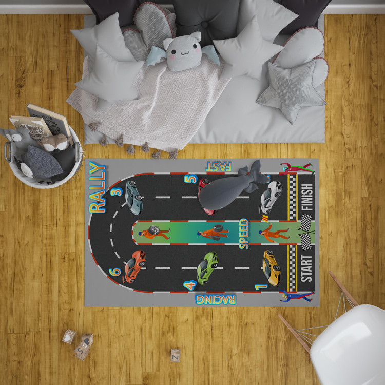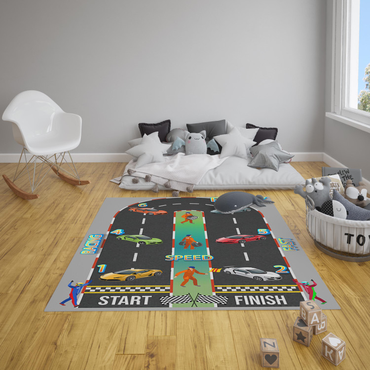 فرشینه مخمل ضد حساسیت اتاق کودک بازی ماشین مسابقه کد h 509 - فرش چاپی اتاق کودک