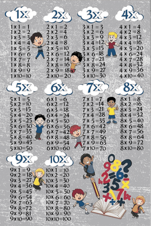 فرشینه مخمل ضد حساسیت اتاق کودک جدول ضرب کد h 510 - فرش چاپی اتاق کودک