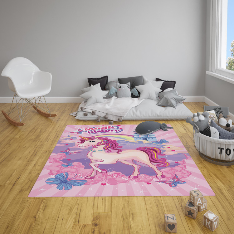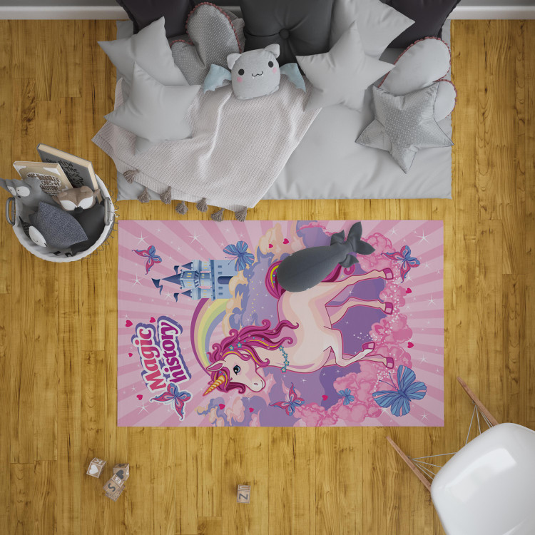 فرشینه مخمل ضد حساسیت اتاق کودک طرح اسب تک شاخ کد h 514 - فرش چاپی اتاق کودک