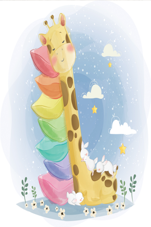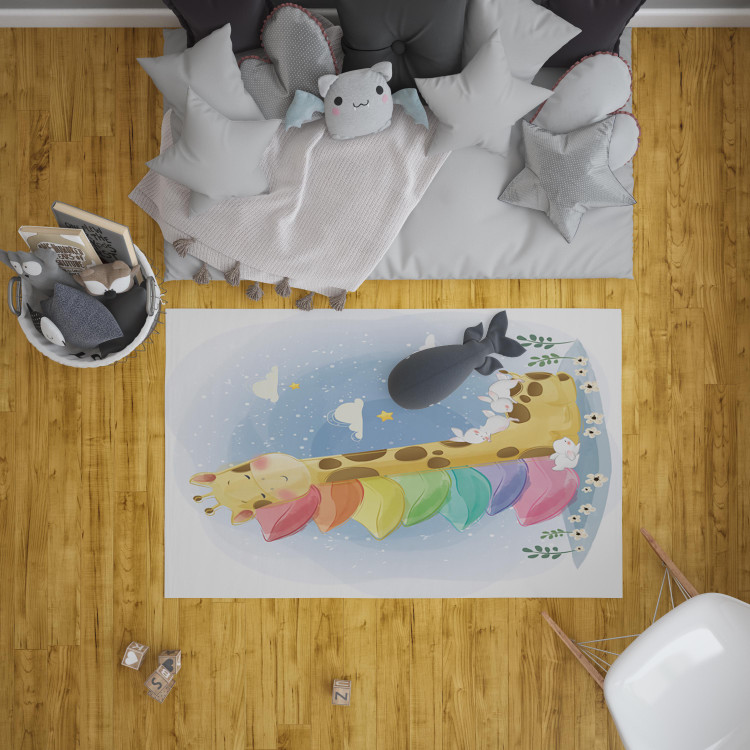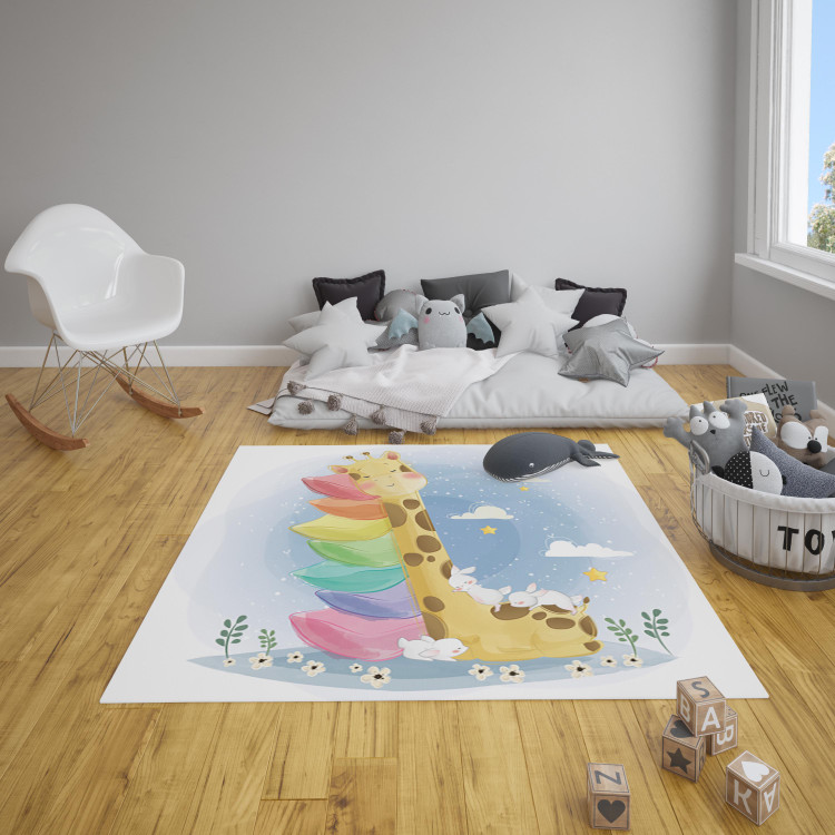 فرشینه مخمل ضد حساسیت اتاق کودک طرح زرافه فانتزی کد h 518 - فرش چاپی اتاق کودک