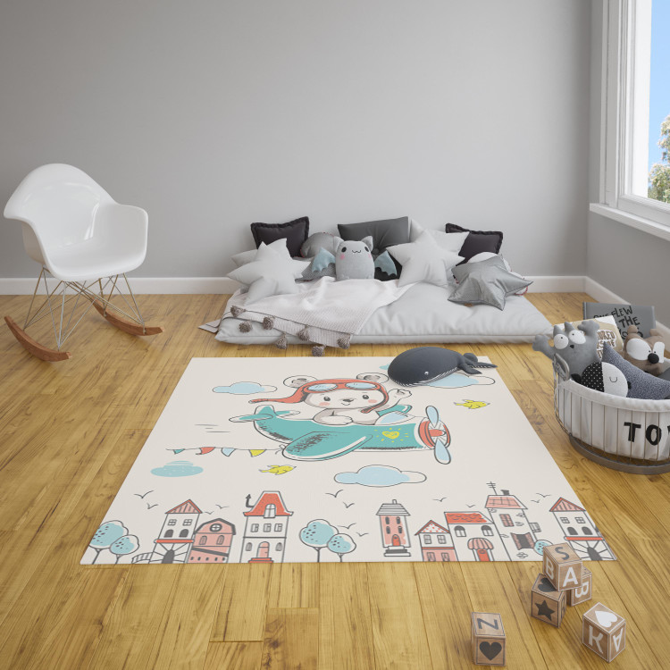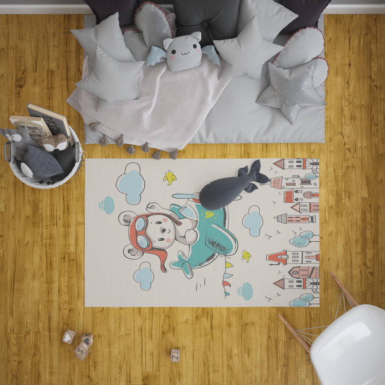 فرشینه مخمل ضد حساسیت اتاق کودک طرح خرس پرنده کد h 534 - فرش چاپی اتاق کودک
