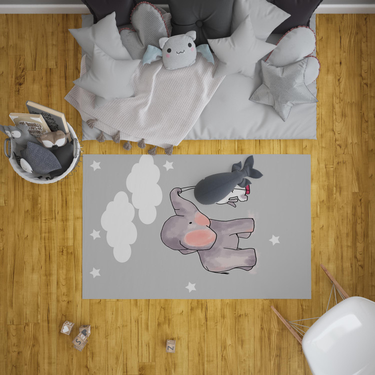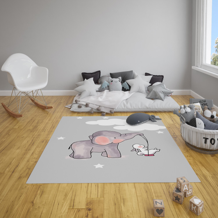 فرشینه مخمل ضد حساسیت اتاق کودک طرح فیل وخرگوش کد h 537 - فرش چاپی اتاق کودک