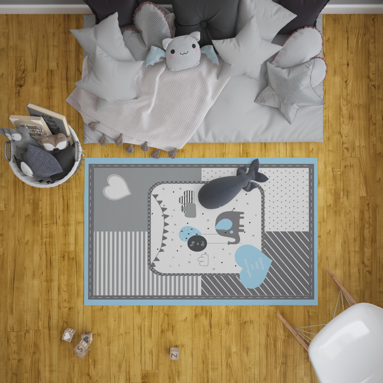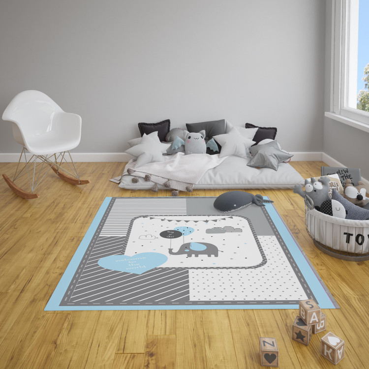 فرشینه مخمل ضد حساسیت اتاق کودک طرح فیل وبادکنک مینیمال کد h 538 - فرش چاپی اتاق کودک