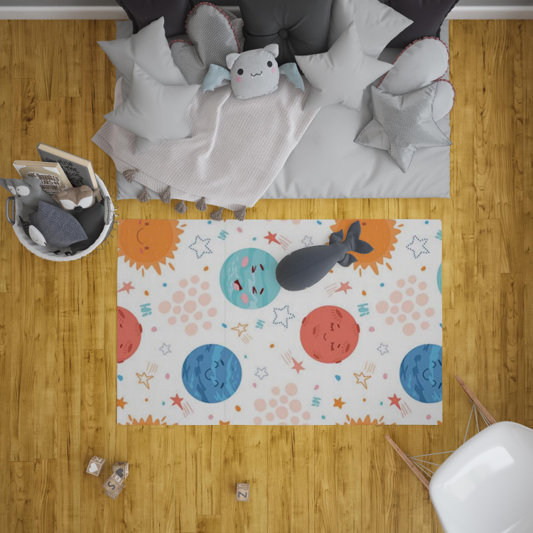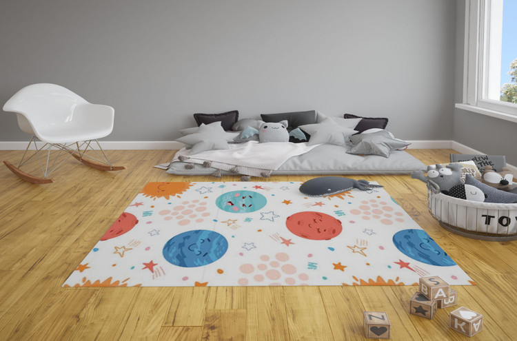 فرشینه مخمل ضد حساسیت اتاق کودک طرح کهکشان مینیمال کد c 173 - فرش چاپی اتاق کودک