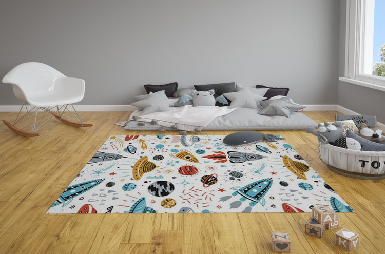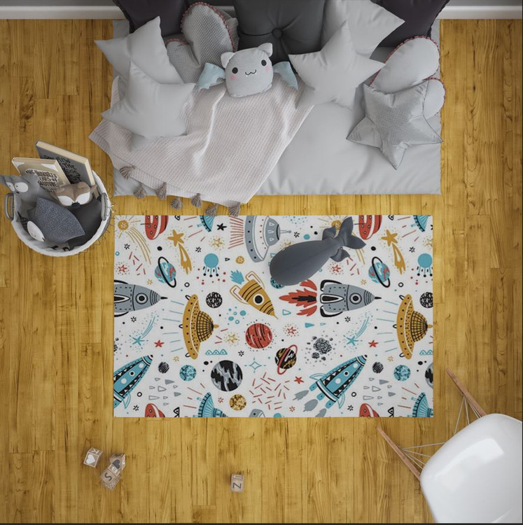فرشینه مخمل ضد حساسیت اتاق کودک طرح سفینه فضایی مینیمال کد c 177 - فرش چاپی اتاق کودک