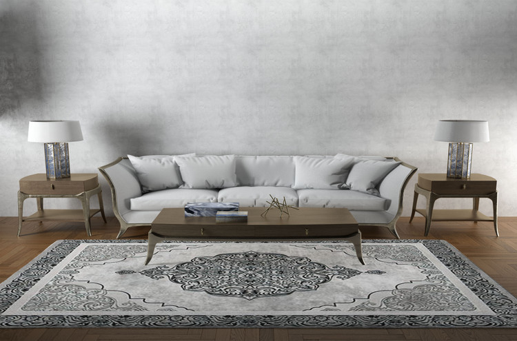 این طرح با رنگهای سرد و الگوهای پیچیده، مناسب برای فضاهایی که به دنبال ایجاد حس سرما و سکوت هستند. این فرش حس آرامش و انجماد را به فضا القا میکند.