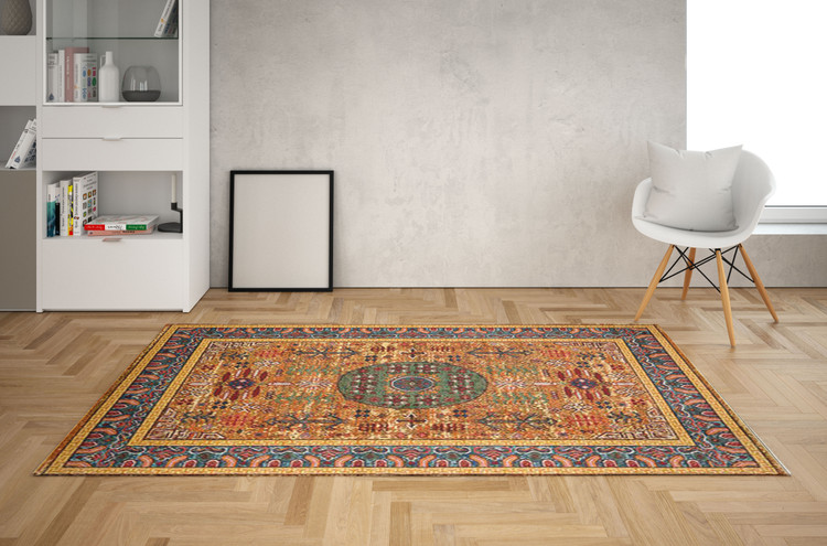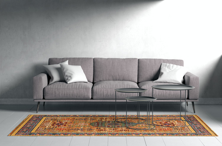 طرح مهرگان رنگین با رنگهای زرد و نارنجی و الگوهای هندسی، حس گرما و انرژی را به فضا میآورد. این فرش مناسب برای اتاقهای نشیمن و فضاهای پر انرژی است که به دنبال ایجاد حس زندگی و شادی هستند. الگوهای هندسی و رنگهای گرم این فرش، آن را به انتخابی جذاب برای دکوراسیونهای مدرن و معاصر تبدیل کرده است.
