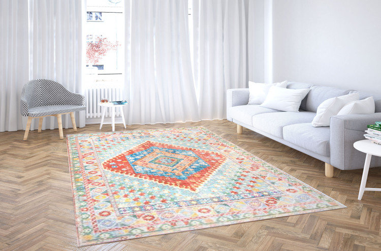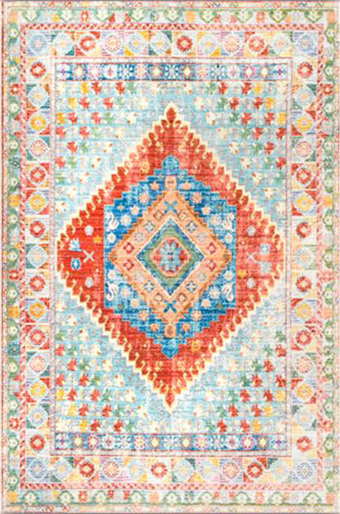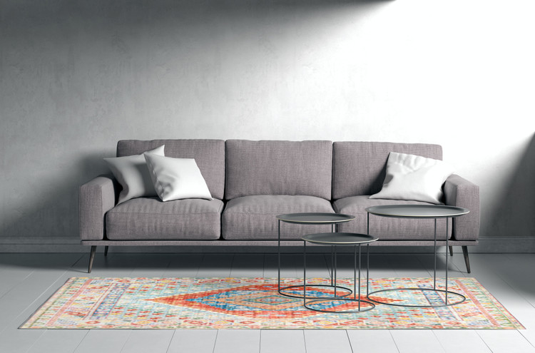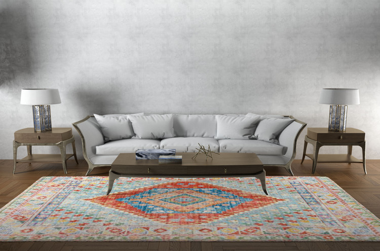 فرش نگین افسانه با الگوهای خاص و ترکیب رنگهای آبی و نارنجی، زیبایی خیرهکنندهای به دکوراسیون شما میبخشد. این فرش مناسب برای فضاهایی است که به دنبال انرژی و زیبایی بصری هستند.