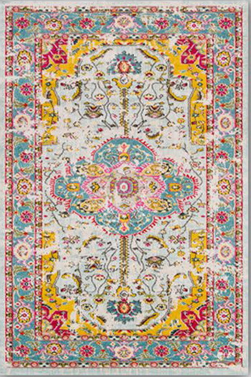 فرش گلنگار زرد با رنگهای زنده و شاد نظیر زرد، آبی و صورتی و الگوهای گلدار زیبا، فضای پرانرژی و خاصی به اتاق شما میبخشد. این فرش مناسب فضاهای پرنور و شاد است و به دکوراسیون شما جلوهای منحصر به فرد میدهد.