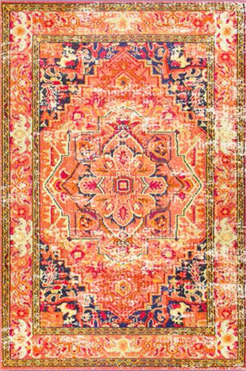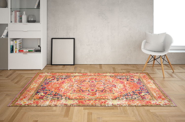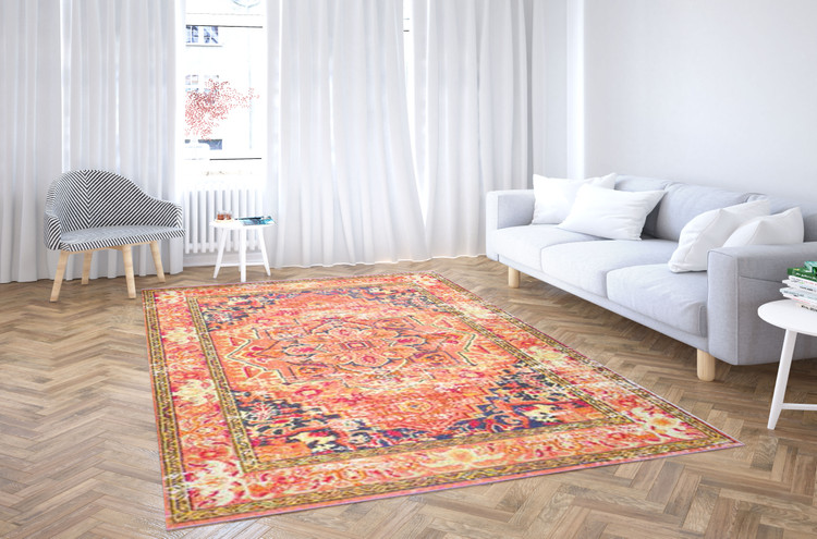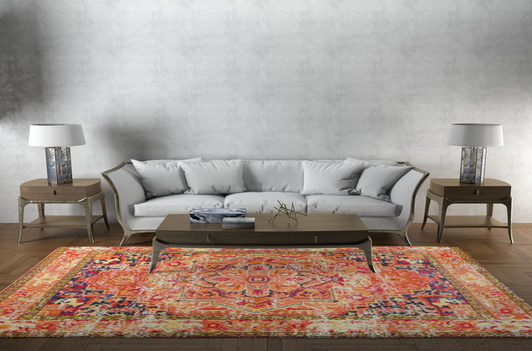 فرش آتشین نارنجی با ترکیب گرم رنگهای نارنجی و قرمز و طراحی پیچیده، فضایی گرم و پرشور را به اتاق شما میآورد. این فرش مناسب فضاهای پرانرژی و گرم بوده و زیبایی بینظیری به دکوراسیون شما اضافه میکند
