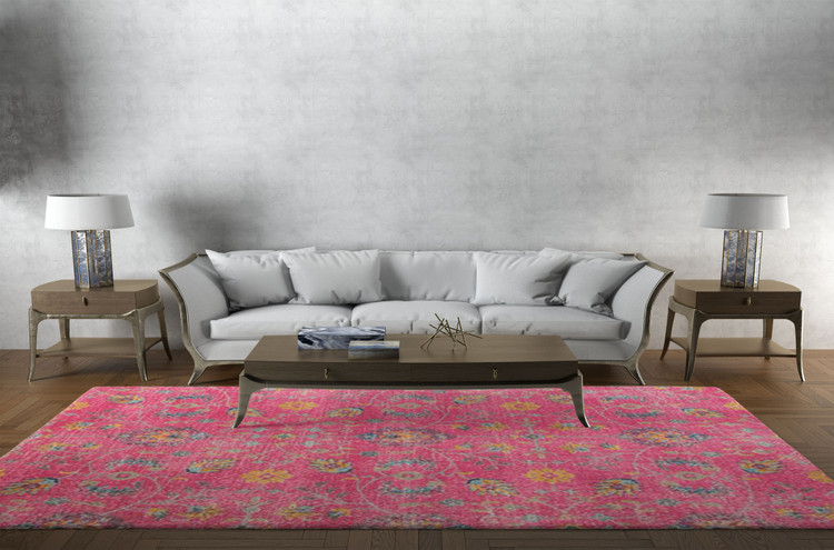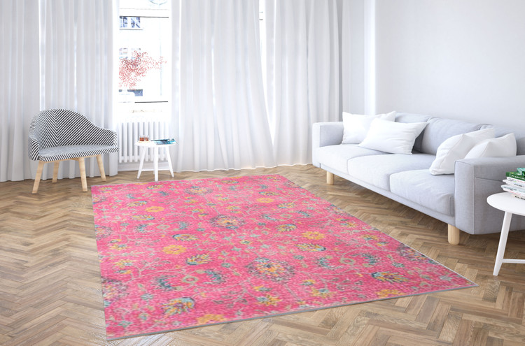 فرش صورتی گلدار - فرشینه و فرش مدرن کد M172