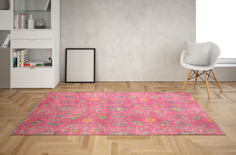 فرش صورتی گلدار با رنگهای شاد و الگوهای گلدار، جلوهای پرانرژی و شاداب به دکوراسیون شما میبخشد. این فرش مناسب برای فضاهای مدرن و رنگارنگ است.