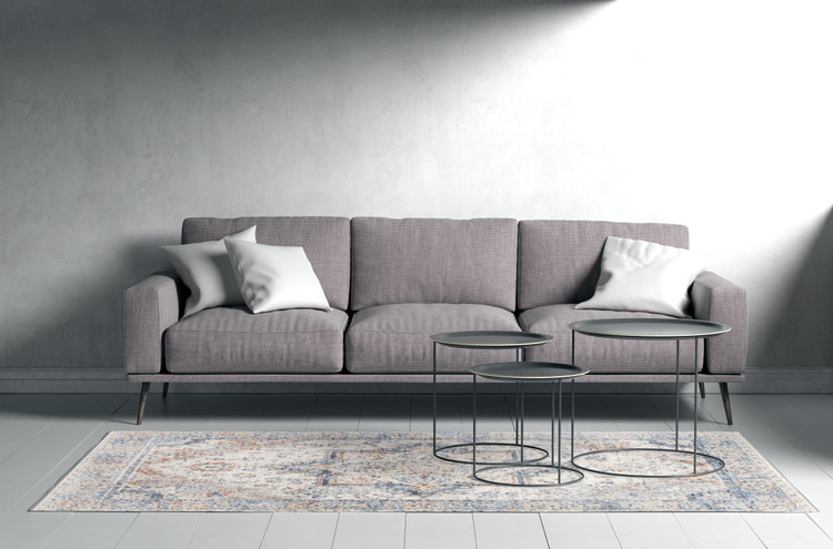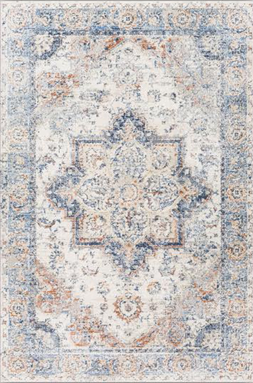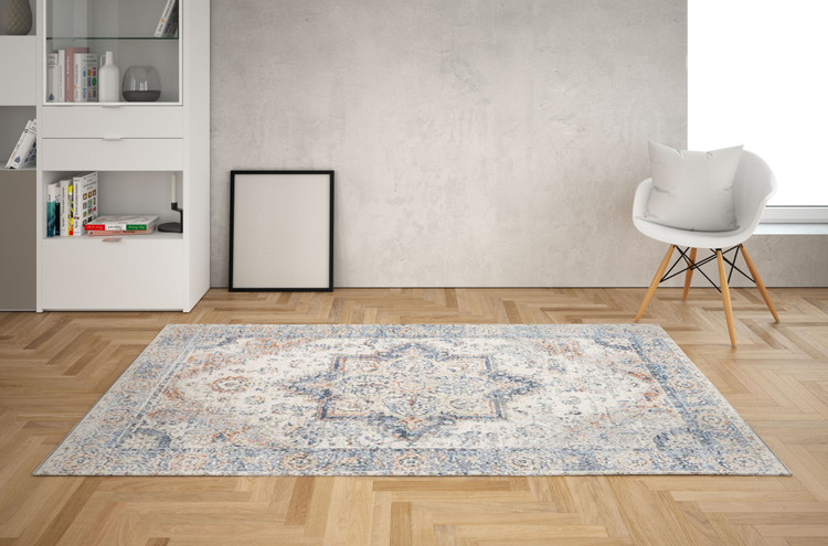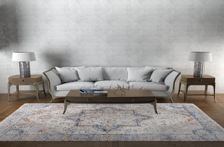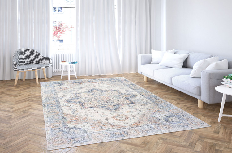 فرش لالههای آبی کد M199 با رنگهای ملایم آبی و طراحیهای هنری، فضایی آرامشبخش و شیک را به هر فضایی هدیه میدهد.