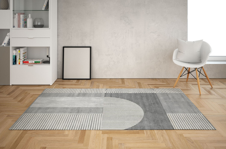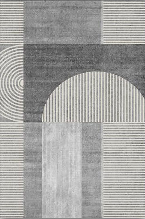 فرش هندسه نوین کد M244 با الگوهای مدرن و مینیمالیستی مناسب برای دکوراسیونهای معاصر است. ترکیب خطوط و اشکال هندسی حس نظم و تازگی به فضا میبخشد.
