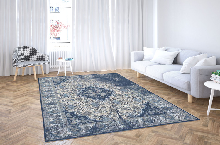 فرش نگار آبی کد M248 با طرحهای کلاسیک و رنگهای عمیق آبی و کرم، فضایی سلطنتی و اصیل را به خانه میآورد. این فرش برای دکوراسیونهای کلاسیک و اصیل بسیار مناسب است.