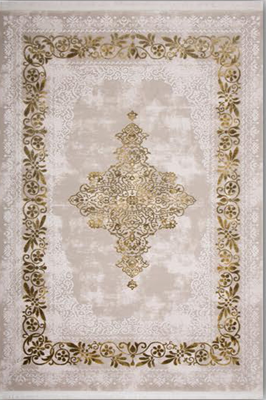 فرش لوکس سفید و طلایی - فرشینه و فرش مدرن کد M333