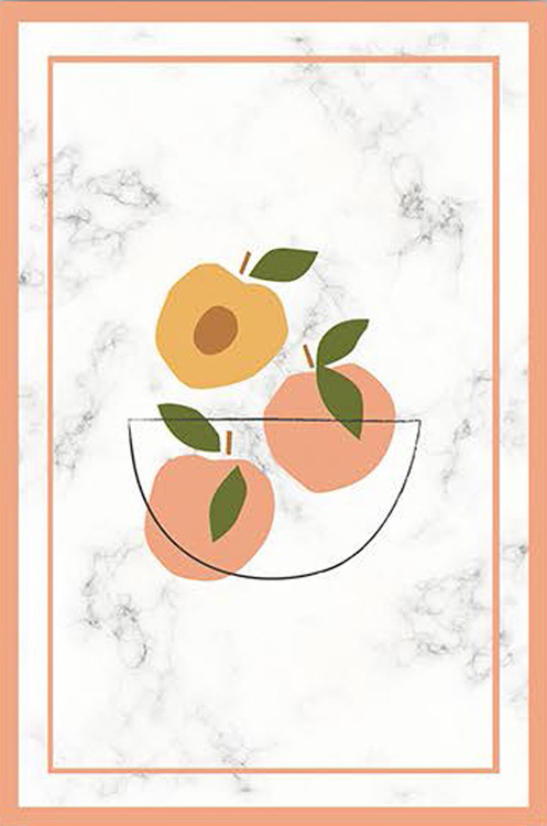 فرش میوهای مدرن کد K111 با طراحی مدرن و ساده از میوهها و پسزمینه سفید مرمرین، انتخابی شیک برای آشپزخانههای مدرن است.