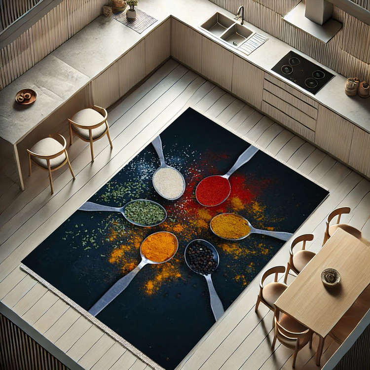 فرش چاپی حلقه ادویه‌ها - فرشینه و فرش آشپزخانه کد K119